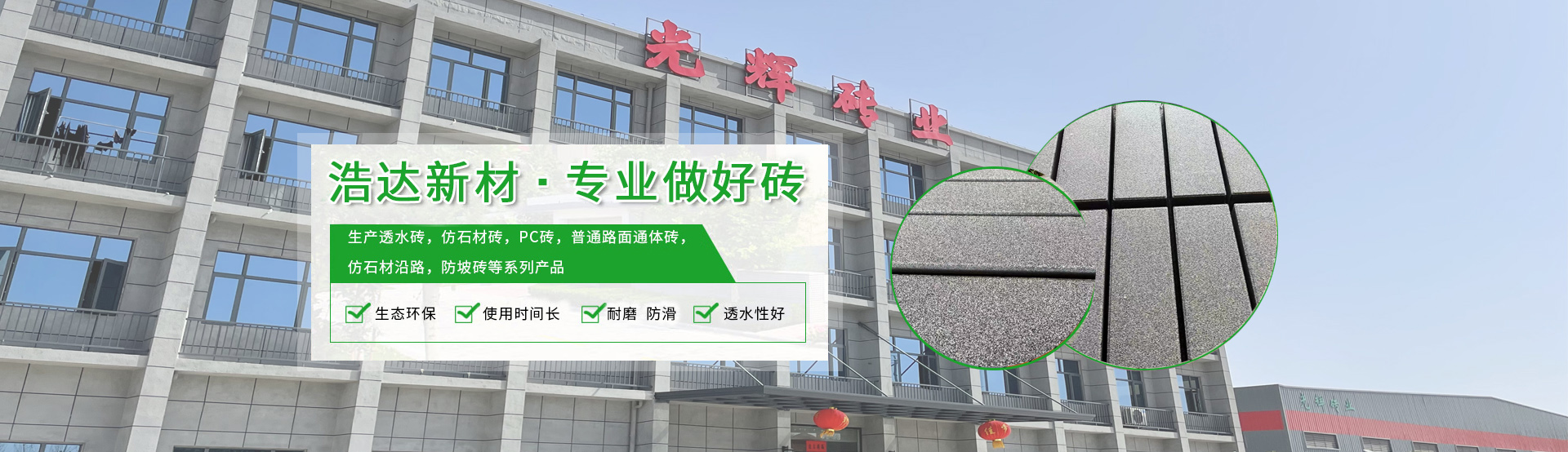武漢浩達新型建材股份有限公司《光輝彩磚》成立于1999年,是湖北省內早期生產銷售路面磚企業之一,公司產品齊全,主要生產透水磚,仿石材磚,PC磚,普通路面通體磚,仿石路沿石,護坡磚等系列產品,歷經近20年的發展,目前分別有武漢,鄂州兩大生產基地,年生產銷售各類路面磚60萬平米,是華中地區規模,銷量較大的綜合性路面磚生產企業。